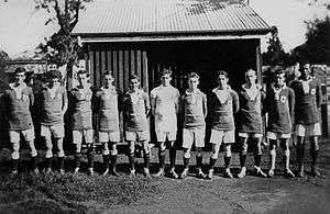 By 1920, the QBFA had dropped 'British' from its name and was now known simply as the 'Queensland Football Association' (QFA),[91] and now based at the Brisbane Cricket Ground. As noted below, Ipswich teams had also rejoined the Brisbane competition. The 1921 QFA season saw eight teams in the First Grade: Brisbane City, Bundamba, Corinthians, Bush Rats, Pineapple Rovers, South Brisbane, Thistle and Wynnum (remarkably, Wynnum (now Brisbane Wolves) made its First Grade debut in the year the club was formed).[92] The Second and Third Grade competitions included teams such as Caledonians, Glenallen, Kangaroos, Latrobe, Merthyr, Nundah, Ovals, Rovers, Triangles, Toowong Cadets, Violets and Wilstons.[93][94]