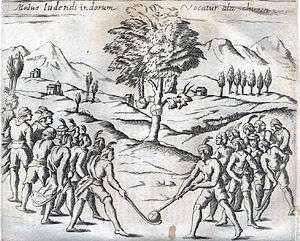 Games played with curved sticks and a ball can be found in the histories of many cultures. In Egypt, 4000-year-old carvings feature teams with sticks and a projectile,[5] hurling dates to before 1272 BC in Ireland, and there is a depiction from approximately 600 BC in Ancient Greece, where the game may have been called kerētízein or (κερητίζειν) because it was played with a horn or horn-like stick (kéras, κέρας).[6] In Inner Mongolia, the Daur people have been playing beikou, a game similar to modern field hockey, for about 1,000 years.[7]