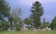 Home of Peace is a Jewish cemetery in Helena, Montana, founded in 1867 by the local Hebrew Benevolent Society (also referred to as the Hebrew Benevolent Association), which formed on December 9, 1866.[3] The Society formally purchased the land in 1875. The Home of Peace Cemetery Association now maintains the grounds. It is the oldest active cemetery in Helena and the oldest active European ethno-religious cemetery in Montana.[1][3] There are three major sections of land owned by the Association: the cemetery, undeveloped adjacent land, and land leased to the Helena School District since 1975. The portion leased by the school district is a practice football field for Capital High School and contains unmarked graves from the earliest days of the cemetery. The original wrought iron fence erected in 1867 still stands except on the north side and is in disrepair in places. A granite gateway erected in 1910 is at the main entrance. The east gate also has granite markers. There is a water tower, pump house, and landscaping shed. Twelve broken tombstones lie at the base of the water tower. The northwest corner has remained undeveloped and in its natural wild state. In 1910 cottonwood trees were planted along the driveway.[1]