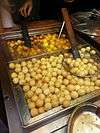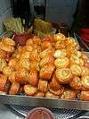 Hong Kong street food is characterised as the ready-to-eat snacks and drinks sold by hawkers or vendors at food stalls, including egg waffles and stinky tofu, according to the definition provided by the Food and Agricultural Organization.[1] They can be found throughout the city, especially around Mong Kok, Causeway Bay, Yuen Long, Tsuen Wan, and Kwun Tong.