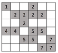 The Hoshen–Kopelman algorithm is a simple and efficient algorithm for labeling clusters on a grid. Where the grid is a regular network of cells, with the cells being either occupied or unoccupied. This algorithm is based on a well-known union-finding algorithm.[1] The algorithm was originally described in by J. Hoshen and R. Kopelman in their 1976 paper "Percolation and Cluster Distribution. I. Cluster Multiple Labeling Technique and Critical Concentration Algorithm".[2]