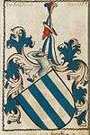 The ancestral arms of the Lords of Seinsheim consisted of six vertical stripes in silver and blue.[2] However, the Schwarzenberg family's original coat of arms has four silver and four blue vertical stripes. Moreover, it starts with silver on the heraldic right (mirror-inverted perspective).