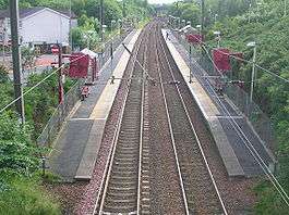 There is a half-hourly service at the station. Trains run from Ayr-Glasgow Central, calling at all stops between Glasgow and Ayr.[3] This drops to hourly in the evening and on Sundays, when trains run to either Ardrossan Harbour or Largs.