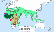 . PMID 13682585. - ↑ Ruwende C, Khoo SC, Snow RW, Yates SN, Kwiatkowski D, Gupta S, Warn P, Allsopp CE, Gilbert SC, Peschu N, Newbold CI, Greenwood BM, Marsh K, Hill AV (1995). "Natural selection of hemi- and heterozygotes for G6PD deficiency in Africa by resistance to severe malaria". Nature. 376 (6537): 246–249. Bibcode:1995Natur.376..246R. doi:10.1038/376246a0. PMID 7617034.