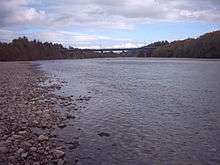 The headwaters in the Kaitoke Regional Park are closed to preserve the quality of the drinking water drawn off at Kaitoke to supply the greater Wellington area. Below Kaitoke is the Kaitoke Gorge, a popular destination for rafting. Below the gorge is Te Marua, where the Mangaroa River joins the Hutt from the east. Further down, at Birchville, the Akatarawa River joins the Hutt from the west. Here it flows in a deep channel between the surrounding hills and is turned to flow across the Wellington Fault to Maoribank. The movement of the fault can be seen from the displacement of the river terraces in Harcourt Park.[1] At the top of the Upper Hutt floodplain, the river makes a sharp turn against the bedrock at the foot of the cliff at Maoribank to flow down the valley. The Upper Hutt floodplain contains the greater portion of Upper Hutt city. The Whakatiki River joins the Hutt from the west and it is about this point the river starts to flow along the virtually straight Wellington geologic fault, which lies on the western side of the river valley. At the lower end of the Upper Hutt floodplain is Taita Gorge, which separates Upper Hutt from Lower Hutt, this gorge is significantly shorter and less constricting than Kaitoke gorge. The river's outflow, at Petone, is into Wellington Harbour. The geological fault that the river previously followed continues as a steep bluff at the edge of the Wellington Harbour.