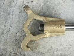A hydrant wrench is a tool used to remove fire hydrant caps and open the valve of the hydrant. They are usually adjustable so as to fit different sized hydrant nuts.