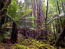 Since it is located in New Zealand as well as Australia, this indicates that the species predates Gondwanaland, suggesting that this species may be included as one of the earliest species to diverge from water to land and may give vital insight toward how vascular plants evolved.[19][20][21] Hypnodendron comosum var. sieberi is more commonly located on mainland Australia and the northern South Island of New Zealand, whereas H. c. var. comosum is more commonly located in Tasmania, the southern South Island of New Zealand, and the islands located in the southern ocean.[22]