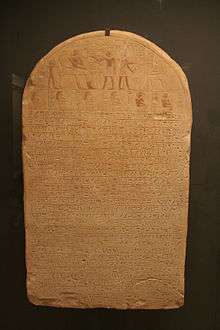 Imenmes (fl. c. 1300 BC[1]) was an Ancient Egyptian governor, who was an Amun chief, probably around the time of the late Eighteenth Dynasty of Egypt. Little is known about him, but several items in the Louvre are related to him, including the Hymn of Imenmes on a stele and a gamebox, known as a senet, which belonged to one of his children.[2] The stele contains a hymn of 28 lines related to the worship of Osiris. In the upper curve of the stele, a double offering scene depicts Imenmes, his wife and one of his sons, and below this, framed in boxes, are the couple’s six other children kneeling.[3]