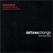 "Change (In the House of Flies)", often referred to as "Change", is a song by the American alternative metal band Deftones, released as the first single from their third album, White Pony, in June 2000. It remains their most commercially successful single to date, peaking at No. 3 in Billboard's Modern Rock Tracks chart, No. 9 in the Mainstream Rock Tracks chart[2] and No. 53 in the UK Singles Chart.[3] The song was featured on the Muchmusic compilation album Big Shiny Tunes 5. The song has been described as alternative rock.[1]