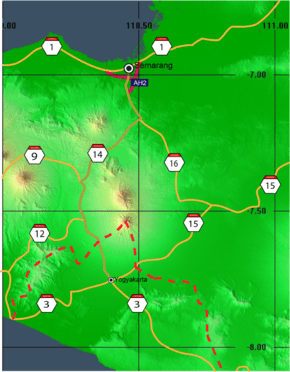 Indonesian National Route 14 starts from Semarang on the north coast of Java and ends at Yogyakarta to the south.[1][2]