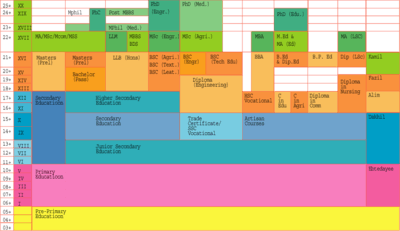 There are eight regional boards (Barisal, Chittagong, Comilla, Dhaka, Jessore, Rajshahi, Sylhet, Dinajpur) plus the Madrasah Board and the Technical Board. In 1985 Dakhil level was given the standard of education of S.S.C. and in 1987 Alim level was given the standard of education of H.S.C in a reform of the entire education system. The boards are also responsible for the recognition of private sector educational institutes.