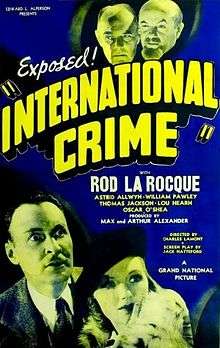 International Crime is a 1938 American film featuring a loose version of The Shadow directed by Charles Lamont starring Rod La Rocque and Astrid Allwyn.
