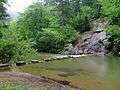 The Iron Springs picnic area is set on the west side of Arkansas Highway 7, about 4.5 miles (7.2 km) north of Jessieville, between the road and the Middle Fork Saline River. The river is impounded by a low fieldstone dam, built by the CCC in 1933, which features alternating chutes and steps, and impounds enough water to form a modest swimming hole.[2]