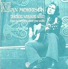 "Jackie Wilson Said (I'm in Heaven When You Smile)" is a song written and performed by Van Morrison and featured as the opening track on his sixth studio album, Saint Dominic's Preview. It was released by Warner Bros. in July 1972 as the first of three singles from the album and charted at number sixty-one on the US Billboard Hot 100.