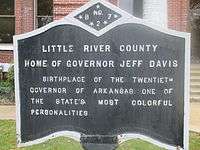 No Civil War battles were fought within Sevier County's bounds, but there were many opportunities for the war to make an impression on a young Jeff Davis. After the Union captured Little Rock in 1863, the state capitol was moved to Washington. Union General Nathaniel Banks later lead the Red River Campaign, an unsuccessful attempt to capture Shreveport, Louisiana via southwest Arkansas, through the county. Beginning in 1865, Laynesport became a Confederate garrison, not far from the Davis property. Perhaps equally indelible was the romanticism of "The Lost Cause" in the years following the war; as a majority of southwestern Arkansas residents remained staunch Confederate supporters.[6]
