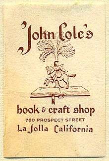 John Cole's Book Shop (originally John Cole's Book and Craft Shop) was a bookstore in La Jolla, San Diego, California. It was founded in 1946 by John (d. 1959) and Barbara Cole (d. 2004) on Ivanhoe Avenue, and moved in 1966 to the Wisteria Cottage at 780 Prospect Street. The cottage had housed Ellen Browning Scripps' half-sister Virginia, and La Jolla Country Day School, prior to becoming the location of John Cole's Book Shop. Susan and Charles Cole, the daughter and son of John and Barbara Cole worked in the book shop as did Susan's daughter Trilce and Charles' son Zachary. Zachary sold harmonicas in the book store. Parties were held for numerous authors over the years. The La Jolla Museum of Contemporary Art lent sculptures to John Cole's Book Shop which were displayed on the grounds.