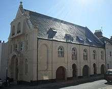 His particular interest was improving education in the town:[13] he founded, and served 31 years (1835–1866) as Secretary of the Board of Governors to, the Brighton Union Charity School in Middle Street (now the Middle Street Primary School) in Brighton;[4][13] and in 1828 together with John Russell, 1st Earl Russell (1792–1878) he founded and served as honorary secretary of the Royal British School on Eastern Road.[4][15] In 1847, at the bottom of West Street on the seafront, he founded a school for the children of fishermen and an Independent preaching station called the Bethel Arch, at which he ministered to the fishermen themselves.[16] The 1851 religious census confirmed that the chapel was "also used as a Day School" and had a capacity of 250 seats and standing room for an additional 50 worshippers. Goulty, who signed the census return, recorded 280 attendees at afternoon and evening services, and wrote that "the place is generally full ... [there are] many stragglers at the Door on the Beach".[8] In the same census, Goulty recorded the capacity of Union Chapel as 900 seats and standing room for 100 more, and the morning and evening attendance as 574 and 300 respectively.[8] A third Independent chapel associated with Goulty was the Hove Chapel in the neighbouring town of Hove. Founded in 1824 and with a capacity of 100, it was served by "local preachers" but was registered in Goulty's name. Attendance on census evening was 80.[17] The chapel does not survive and its location is not known, although it may have been associated with a Presbyterian meeting house registered in 1779 "in or near Hove Street".[18]