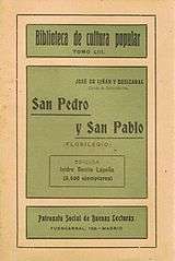 - ↑ he also produced clearly propagandist items, like Biografía de don Jaime de Borbón (1890, as "Pedro Pablo de Larrea")