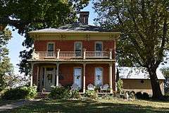 The Joseph Ross House is a historic house located at 5200 Passfield Road in Rochester, Illinois. Joseph Ross built the two-story Italianate house in 1868. The brick house has an "L"-shaped plan with a low hip roof. Two porches run along the house, one at the front entrance and one along the rear ell. A bracketed and dentillated cornice, the house's main decorative feature and a key element of the Italianate style, encircles the roof line. The house is the best-preserved brick Italianate house in the Rochester vicinity.[2]