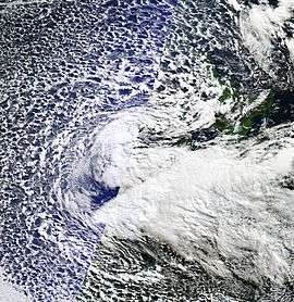 The 2013 New Zealand winter storm was an intense extratropical cyclone which affected New Zealand on 20–22 June. The storm brought strong winds and high waves especially around the Wellington Region, and further afield cold temperatures and heavy snow to the South Island. The storm was described by the New Zealand National Institute of Water and Atmospheric Research (NIWA) as an extreme event.[1] The maximum 10 minute average, sustained wind reading, recorded at Wellington airport was 101 km/hour, with individual gusts up to 130–140 km/hour at this location.[1] Winds were equivalent to the strength of a category 1 or 2 hurricane on the Saffir–Simpson hurricane wind scale.[4] Record wave heights of 15 m peak to trough were recorded by a buoy offshore from Baring Head in the Cook Strait.[1] The highest wind gust was 202 km/hr, at Mt Kaukau, Wellington.[5]