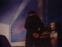 Meanwhile in Berlin, Adolf Hitler listens to a newsflash about the defeat of his U-boat force. Angrily, he flips a switch on the radio and hangs his head in frustration as the tune Praise the Lord and Pass the Ammunition is heard.