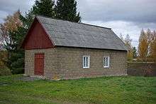 At the moment, Küllätüvä tsässon is the largest of Setomaa stone tsässons that is situated on the territory of the Republic of Estonia. It is a square one-storied stone (lime and gravel blocks hollow from the inside) building with a gable roof. The stone blocks were moulded in Irboska and brought to the site by horses. Tsässon has one interior room, divided into two by a partition wall: An icon scarf room (35 m2) and an altar room (12 m2). Entry to the altar room is through iconostasis gates, characteristic to churches. During 1974 inventory taking, the building still had a shingle half-hipped roof that was in a very bad state at the time. Because of this, the iconostasis, icons, images and other furnishings were completely perished (Kupp 1974). The dimensions of the building from the outside are 947 (l) x 580 (w) cm, height from the ground up to the ridge is 590 cm and the height of the wall is 260 cm. The size of the altar room is 370 x 530 cm.[1]