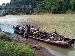A river boat at Cikaso river - Indonesia carrying motorcycles. River transports are common in the area. | |