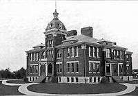 While public education existed in Kirksville from at least the American Civil War era, there was no separate high school building until 1894. The first purpose-built high school building was not built until 1899.[2] However rapid community growth soon necessitated the construction of a bigger KHS in 1914. This building, near downtown Kirksville, served the community well for over forty years. Post-World War II growth and influx of new citizens as well as the post-war baby boom, pointed out the need to plan for the future. As a result, in 1960 the current Kirksville High School was constructed.[3] Its campus-style design was more conducive to expansions and remodeling, both of which have occurred through the decades, ensuring high school education without the high expense of yet another new building.