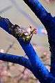 The Blue Trees environmental art installation prototype, Sacred Grove – The Blue Forest afforestation art action, was commissioned by the City of Melbourne in 2005/06. Dimopoulos sees his The Blue Trees as an ephemeral performance art installation using transformation to provoke discussion about the issue of global deforestation.[11][12] The Blue Trees is an ongoing project and has been realized in partnership with cultural and environmental organizations, cities and hundreds of volunteers. Stands of trees, either mature or saplings, are colored with an environmentally safe, ultramarine blue pigment to call attention to global deforestation.