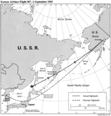 Korean Air Lines Flight 007 alternative theories concerns the various theories put forward regarding the shooting down of Korean Air Lines Flight 007. The aircraft was en route from New York City via Anchorage to Seoul on September 1, 1983, when it strayed into prohibited Soviet airspace and was shot down by Soviet jet fighters.