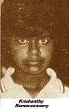 Krishanti Kumaraswamy (Tamil: கிருஷாந்தி குமாரசுவாமி), also spelled Krishanthi Kumaraswamy, was a minority Tamil girl in Sri Lanka who was raped and murdered on 7 August 1996 by 6 Sri Lankan Army soldiers; the effort to bring her assailants to justice became a cause celebre as a part of the protest against atrocities committed by the Sri Lankan Army during the Sri Lanka civil war.
