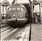 VT 125 as the "Kopenhagen-Express" leavong the train ferry "Theodor Heuss" on Großenbrode Quay on 6 December 1959
