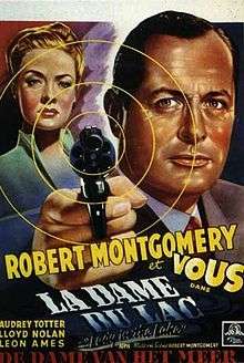 Lady in the Lake is a 1947 American film noir that marked the directorial debut of Robert Montgomery, who also stars in the film. The picture also features Audrey Totter, Lloyd Nolan, Tom Tully, Leon Ames and Jayne Meadows. The murder mystery was an adaptation of the 1944 Raymond Chandler novel The Lady in the Lake. The film was Montgomery's last for Metro-Goldwyn-Mayer, after eighteen years with the studio.