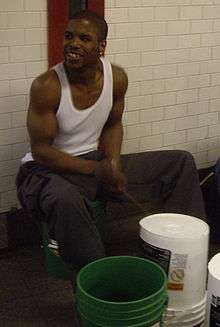 Larry Wright (born c. 1975) is a well-known New York City busker.[1][2] He's credited as the first major drummer to use five gallon plastic buckets instead of a normal drum kit.[3] He uses his foot to lift the bucket changing the sound patterns.
