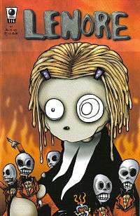 Lenore, The Cute Little Dead Girl is a black comedy comic series created by Roman Dirge, inspired by the poem "Lenore" by Edgar Allan Poe. Lenore has appeared in several comic books by Dirge. From 1998 to 2007, she featured in her own series published by Slave Labor Graphics. Twenty-six flash-animated shorts were also produced for Sony's ScreenBlast website in 2002. In July 2009, a new comic series started, now published by Titan Books and called Lenore Volume II. Previous issues were made into colored edition trade paperback called Lenore Volume I, which is separated into three books.