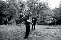 Originally commissioned in 1999 as a photo and text work for Paris' 9/9 revue d’art practique, it was presented in New York City as a performance at the College Art Association, Apex Art, Artists Talk on Art, Participant, Inc. (2005), and Location One (2007). Featured on Jochen Gerz’ web-based anthology-of-art, it was exhibited at the Centre Pompidou and other museums. The photographic prints were installed at Castle Gallery, New Rochelle, New York; Klenova Castle, Klatovy, Czech Republic; and Trynarstarka Tower, Lublin, Poland.[16] A 2004 solo exhibition presented at the Slought Foundation, Philadelphia, PA, traveled to the Schick Art Gallery, Skidmore College, Saratoga Springs, NY and CUE Art Foundation, New York City, New York in 2007.[16][17][18] In 2008, Wesleyan University's Zilkha Gallery presented the multi-media installation "Lenore Malen and the New Society for Universal Harmony."[19][20][21][22]