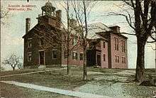 In 1801, the General Court of Massachusetts established Lincoln Academy in regards to promoting "Piety, Religion and Morality." 178 people from nine towns signed the original petition and donated over $3,000 to found the school. Lincoln Academy opened in October of 1805 in a wooden building on River Road in Newcastle with 74 student attending that year. The tuition costed $257 per year and was paid by students' families. Later in 1828, a fire destroyed the original building and a new one was constructed on Academy Hill road. To this day, the building supporting the bell tower serves as the central building of the high school.