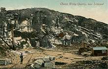 The L&CR was conceived as a mineral railway, and the carriage of passengers was not contemplated or authorised. However the rock formation at the Cheesewring was a considerable local attraction, and organised excursions to it were undertaken; the West Briton reported a temperance excursion to the spot in June 1850.[8] The excursions appear to have been hauled uphill by horse traction and returned by gravity.