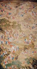 | Nirvana painting, colour on silk 絹本著色仏涅槃図 kenpon chakushoku Butsu nehan zu | Goryeo | Hirado | Saikyō-ji (最教寺) | Goryeo Buddhist painting | 33°21′47″N 129°33′12″E / 33.363177°N 129.553241°E | |||