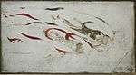 | *Extermination of Evil, colour on paper 紙本著色辟邪絵 shihon chakushoku hekija-e | Kamakura period | Nara | National Institutes for Cultural Heritage (kept at Nara National Museum) | five scrolls | ![]() ![]() ![]() ![]() | 25.8 centimetres (10.2 in) to 26.0 centimetres (10.2 in) by 39.2 centimetres (15.4 in) to 77.2 centimetres (30.4 in) | 34°40′59″N 135°50′17″E / 34.68304161°N 135.83793278°E | |