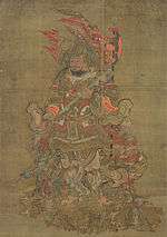 | Bishamon-ten, colour on silk 絹本著色毘沙門天像 kenpon chakushoku Bishamon-ten zō | Kamakura period | Ikaruga | Hōryū-ji | 34°36′52″N 135°44′14″E / 34.614495°N 135.737103°E | ||||