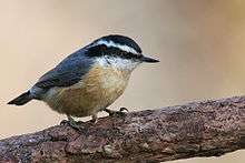 Red-breasted nuthatch Sitta canadensis A permanent resident and an acrobatic species, hitching