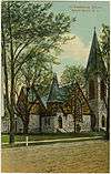 Romanesque Revival; polychrome masonry; one of three contributing buildings in Wolcott Square Historic District |