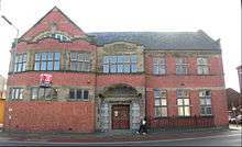 1896 | A branch library built in brick and stone, with a tiled roof. It is in two storeys with three gabled bays, and has an octagonal turret in the corner. The windows are mullioned and transomed, and there are four round columns at the entrance.[13][14] | II |
