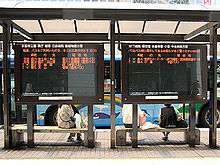 Bus location boards at a bus stop, Kumamoto City Bus.
