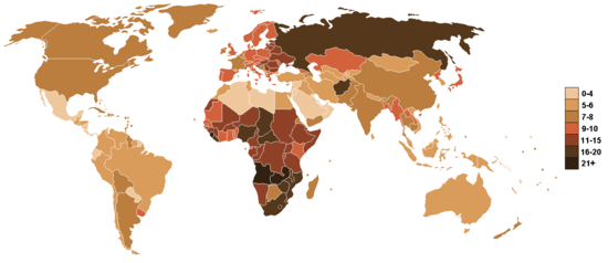 The death rate by country (2009 CIA World Factbook figures).