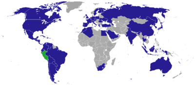 This is a list of diplomatic missions in Peru. There are currently 60 embassies in Lima, and many countries maintain consulates in other Peruvian cities (not including honorary consulates).