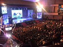 In season 3, the total prize pool was US $8 million.[74] The 2013 Season 3 Championships was held in Los Angeles, featuring a prize pool is $2 million with $1 million for first place. The team SKT T1 won the final, which took place at the Staples Centre on October 4.[75][76] The event drew 1.4 million concurrent viewers during the final series.[77]
