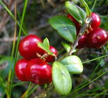 | Lowbush cranberry, Lingonberry | DÁXW | ![]() | Eaten raw, also commonly used in jams and jellies. | In season late in the fall. Rich in antioxidants. |