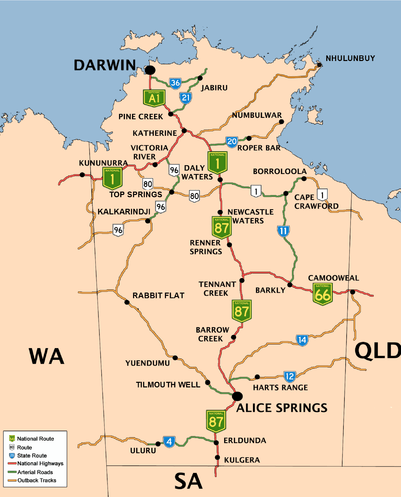 - 1 2 3 4 Department of Transport (April 1998). "Map of all NT Roads" (PDF). Northern Territory Government. Archived (PDF) from the original on 5 May 2013. Retrieved 6 July 2014.